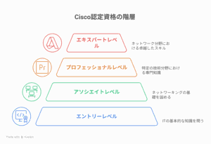Cisco認定資格は、スキルレベルに応じて大きく4つの階層に分かれています。