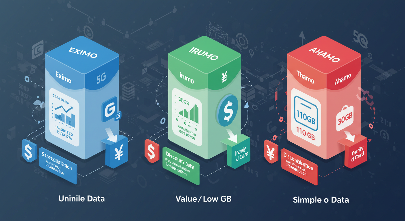 NTTドコモは2023年7月の料金プラン刷新以降、「eximo」「irumo」「ahamo」の三本柱をもって、多様化する顧客ニーズに対応する戦略を採用しています。この刷新は、従来の複雑だった料金体系を整理しつつ、顧客層をデータ利用量、サービス品質、割引適用可能性によって明確にセグメント化することを目的としています。各プランは、特定の利用スタイルに最適化されており、利用者が自身のライフスタイルに合わせて選択することが重要になってきます。