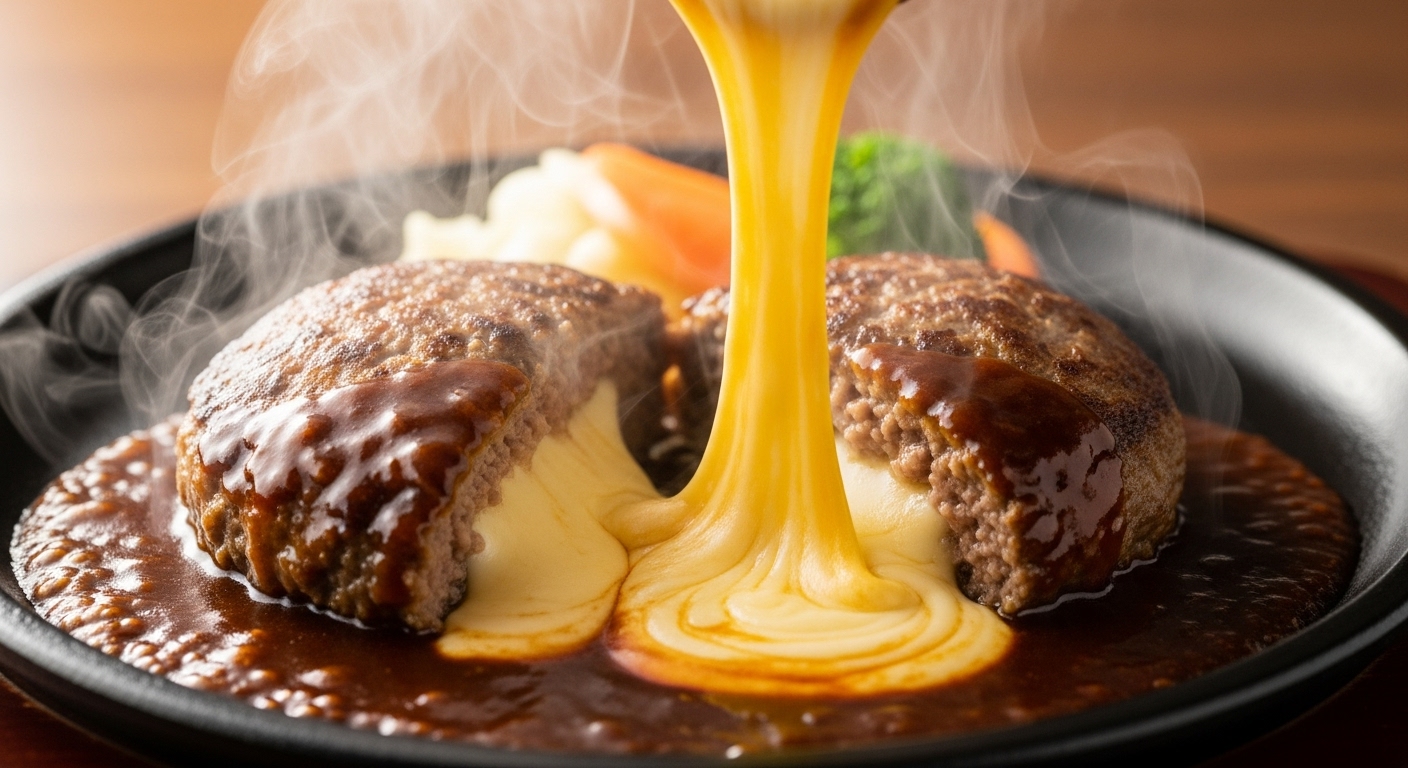 チーズINハンバーグは、10種のチーズとデミグラスソースの調和による「エモい」体験を堪能するべし。