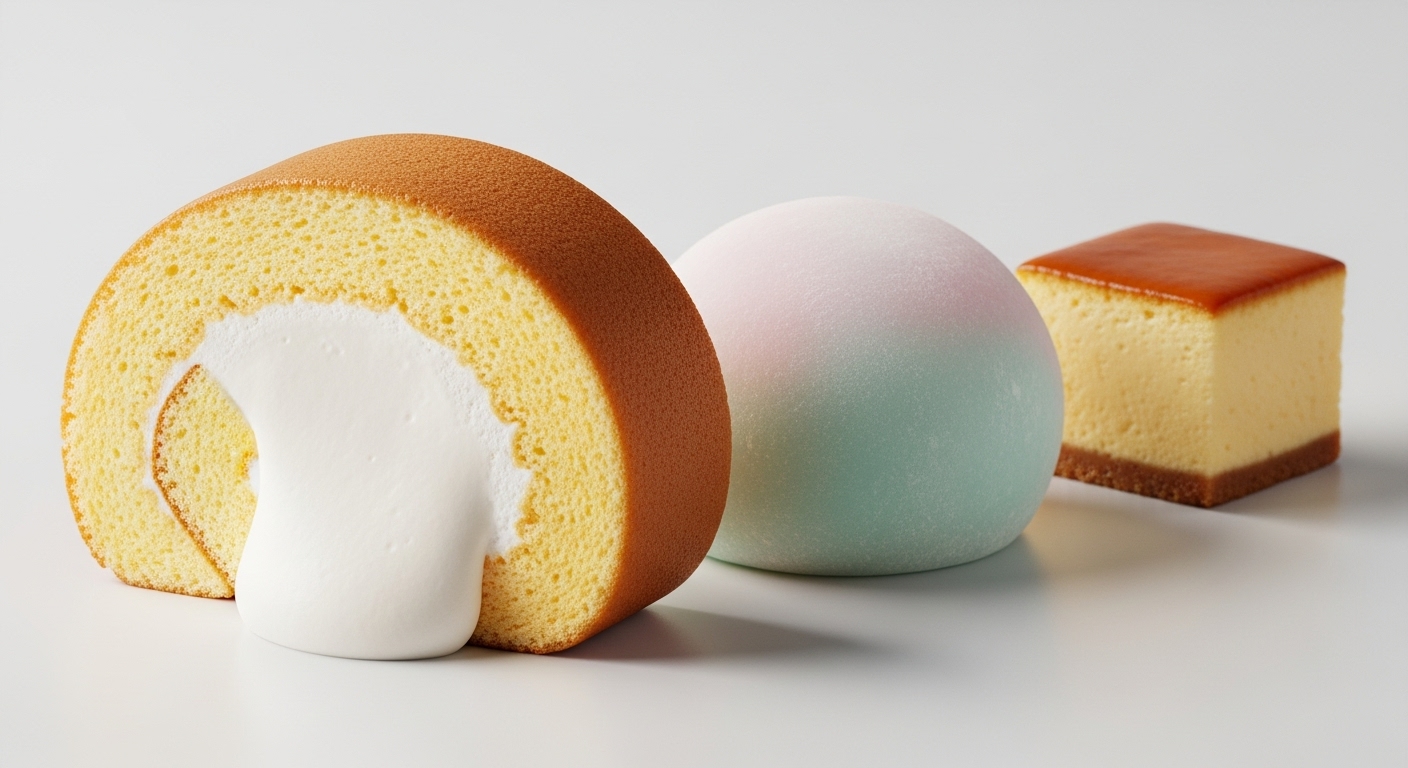 2025年市場における最大のトレンドは「食感の多層化」であり、「もち食感」はその中心に位置しています。各チェーンの新作には、「ふわもちロールケーキ・ミルク」、「ふわもち生大福」、「もち食感ロール」など、「ふわふわ」と「もちもち」のハイブリッドな食感を追求した商品が多数登場しています。