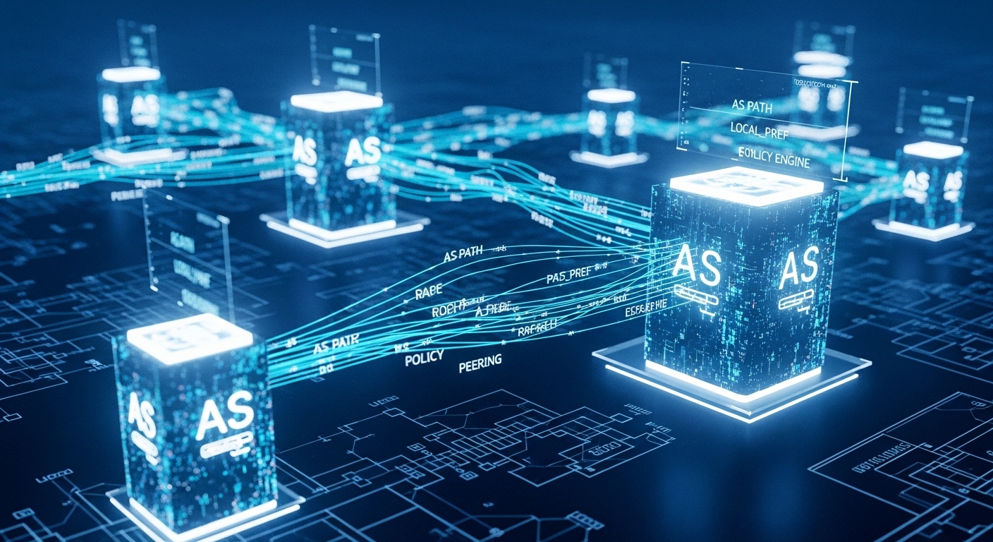 BGPが他のルーティングプロトコルと決定的に異なるのは、その高度な経路選択能力です。BGPルーターは、宛先への複数のパスが存在する場合、厳格な階層構造を持つベストパス選択アルゴリズムに基づき、最適な経路を決定します。このアルゴリズムは、AS管理者が設定したポリシーを優先できるように設計されています。