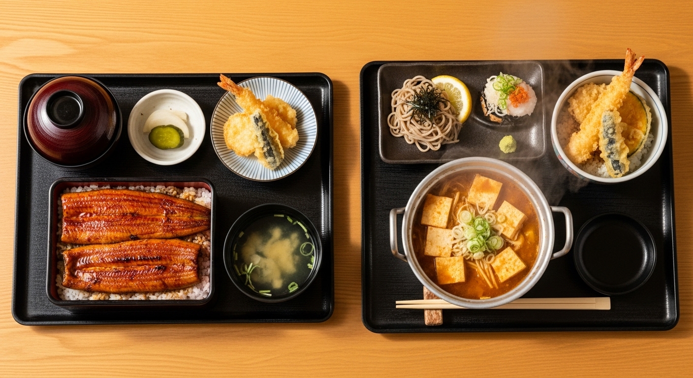 夢庵のメニュー戦略は、低価格のバリュー提案(ランチ、子供メニュー)と、高付加価値のプレミアム提案(うな重、煮付け、松花堂弁当)を両立させることで、広範な市場セグメントの要求に応える多角的なアプローチである。